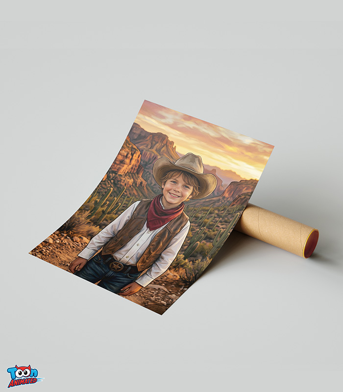 Customized Little Cowboy Portrait – Turn Yourself Into a Superhero